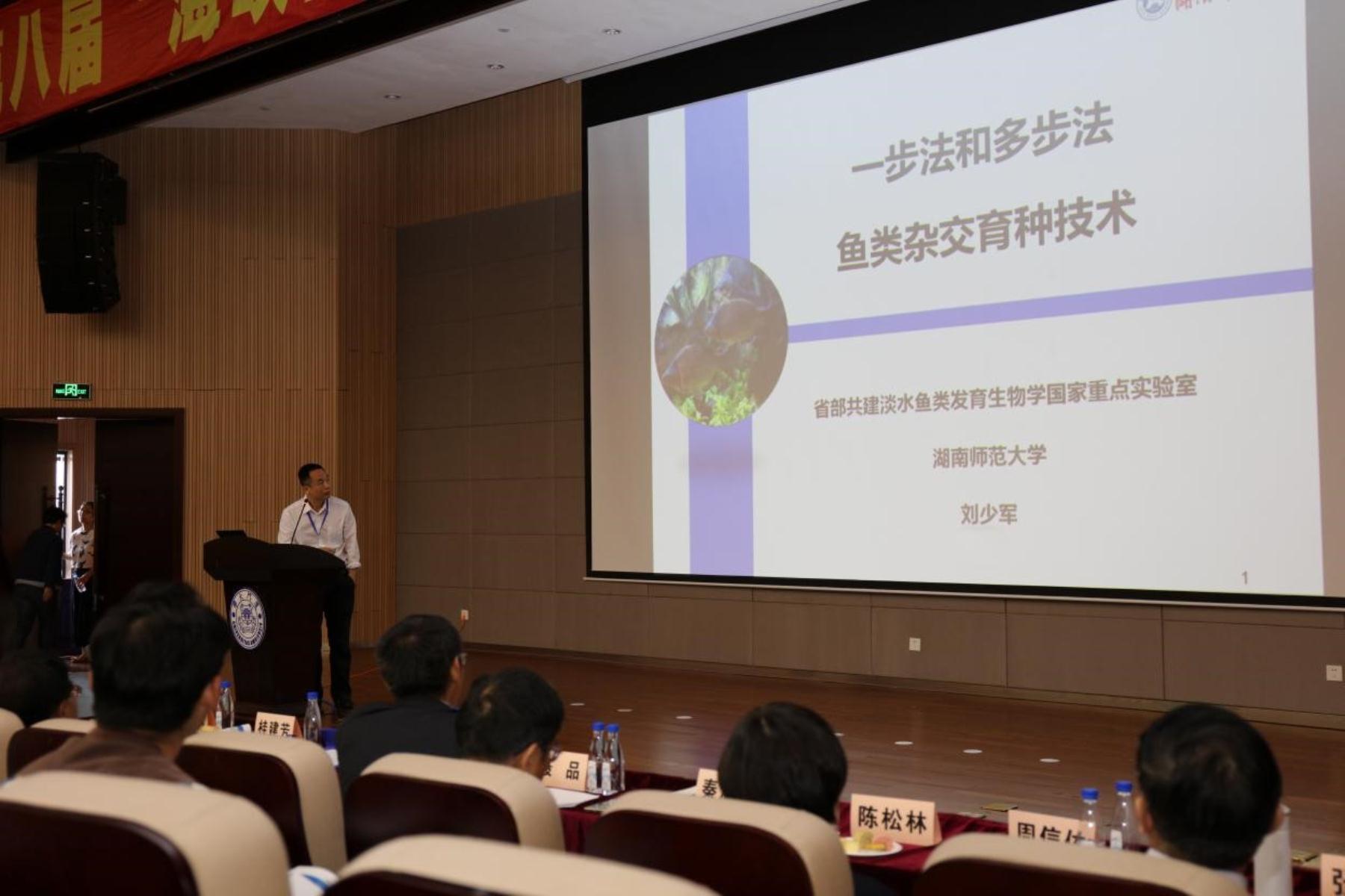 在学术报告环节,廖一久院士、桂建芳院士、英国阿伯丁大学的Christopher John Secombes教授、湖南师范大学的刘少军教授、张清风教授、英国阿伯丁大学的邹钧博士、中研院细胞与个体生物学研究所的黄鹏鹏研究员、王克坚教授分别应邀作了嘉宾报告,分享了各自领域中取得的最新研究进展,并为随后的分会场报告拉开帷幕。