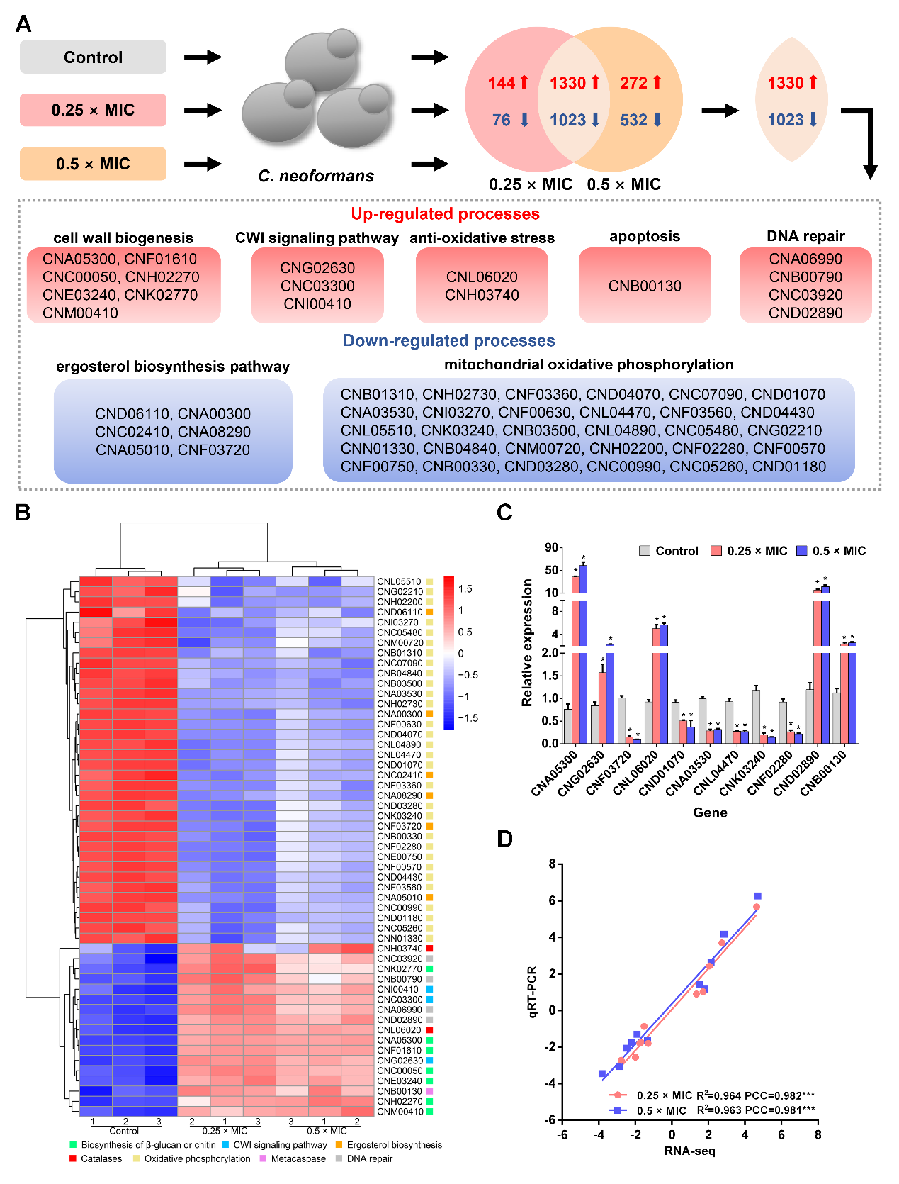 图1. 转录组学分析经Sparamosin26-54处理后的新型隐球菌 (Chen Y.C., et al., 2021)