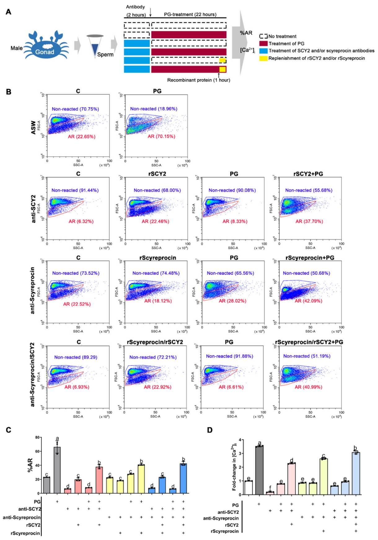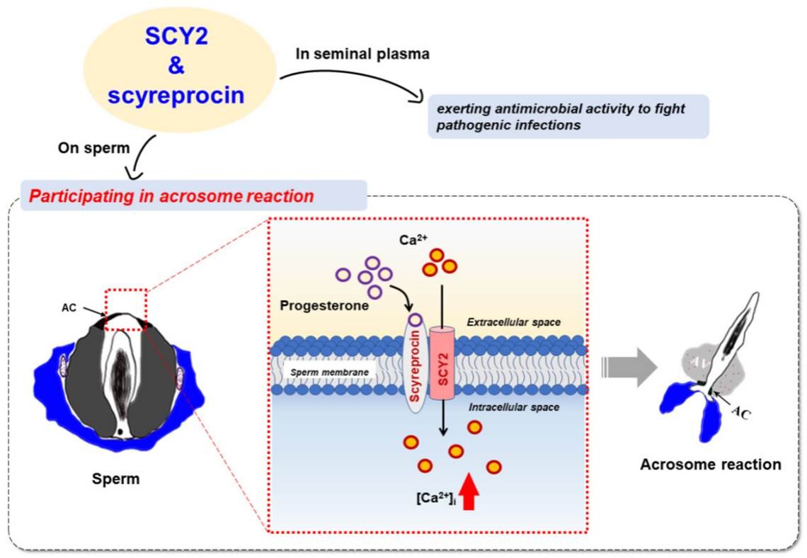 图2 (原图Fig.6). Scyreprocin与SCY2在孕酮(PG)诱导的精子顶体反应中起关键因子作用(Figure 6. Scyreprocin and SCY2 functioned as critical molecules in progesterone (PG)-induced sperm acrosome reaction (AR))